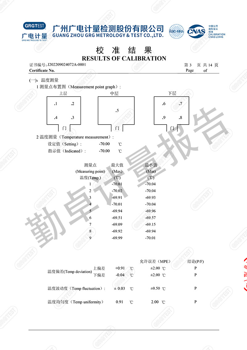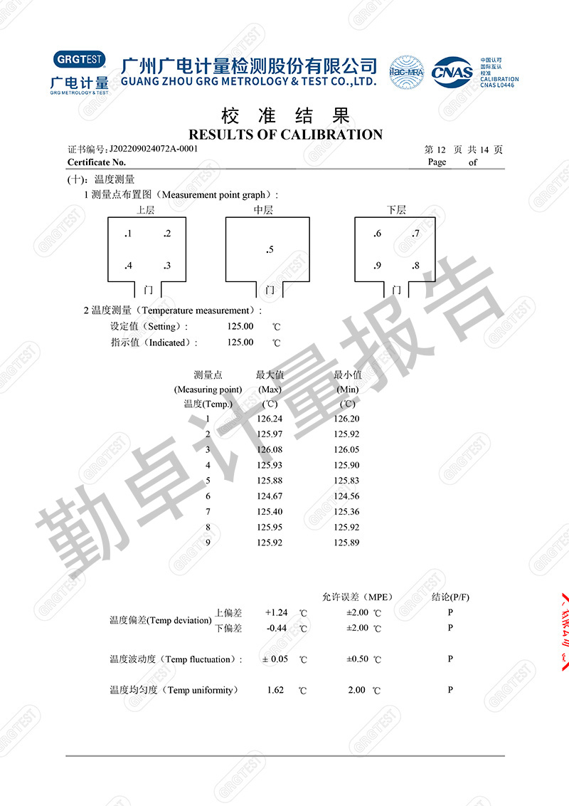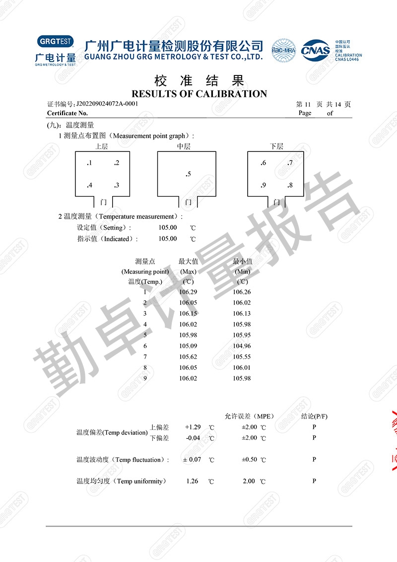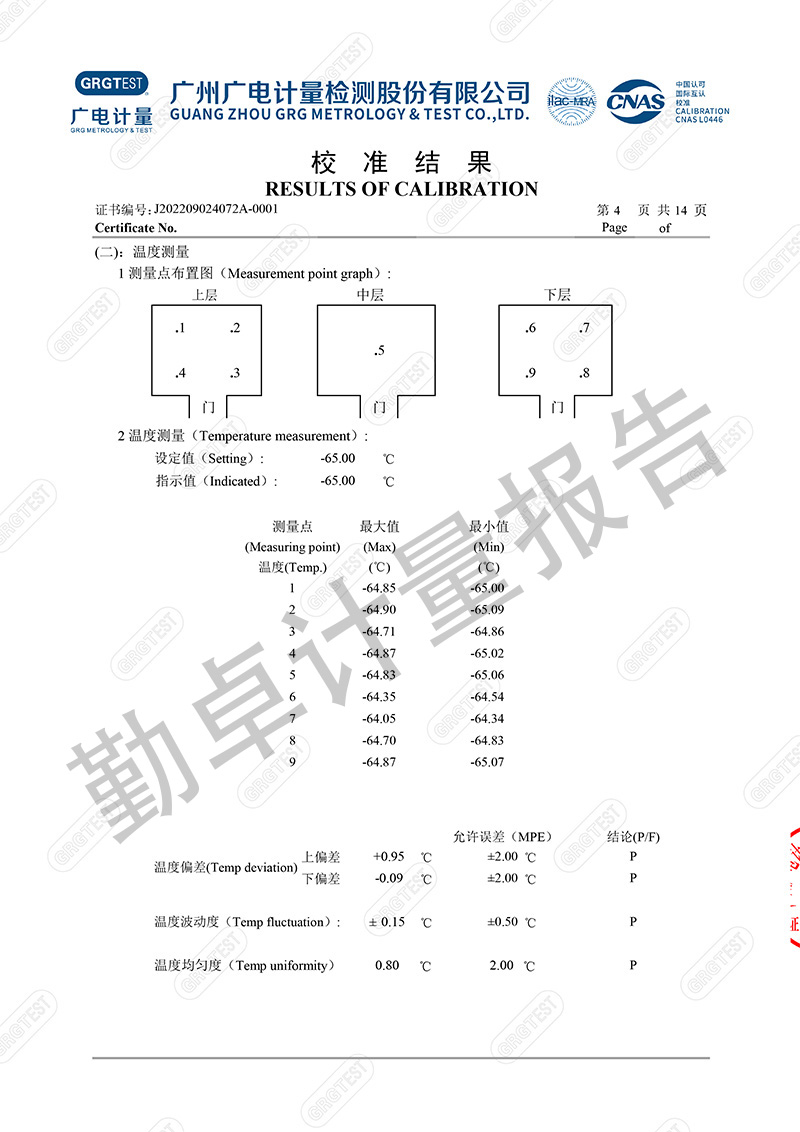 勤卓品牌高低温试验箱一直是勤卓的核心技术优势产品,在高低温试验箱行业中更是以升降温快速,恒温稳定快,温度均匀度偏差小,而成为行业的共识。本次勤卓品牌为用户供应一批250L的高低温试验箱,为进一步评测勤卓品牌高低温试验箱的技术参数,我们邀请了广州广电计量,来进行多项数据的计量。