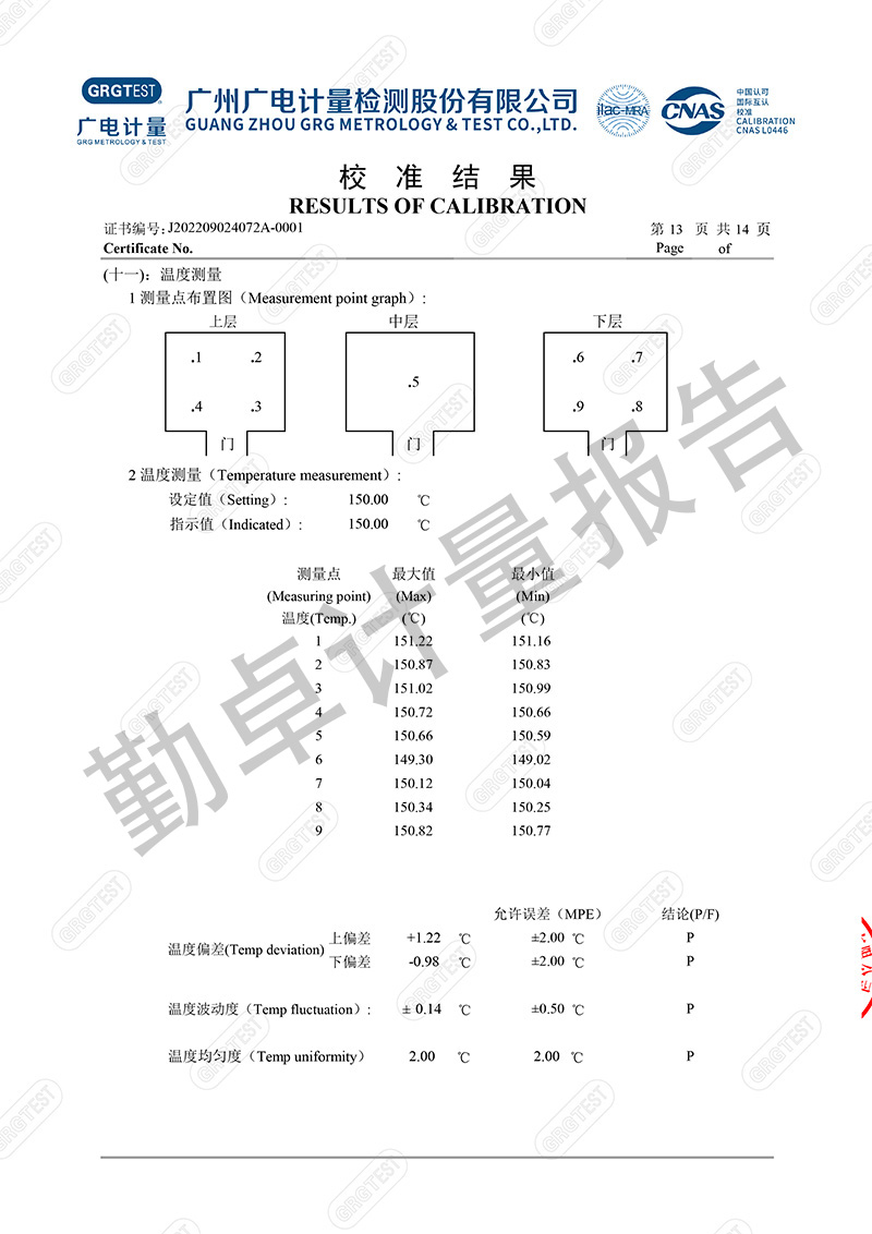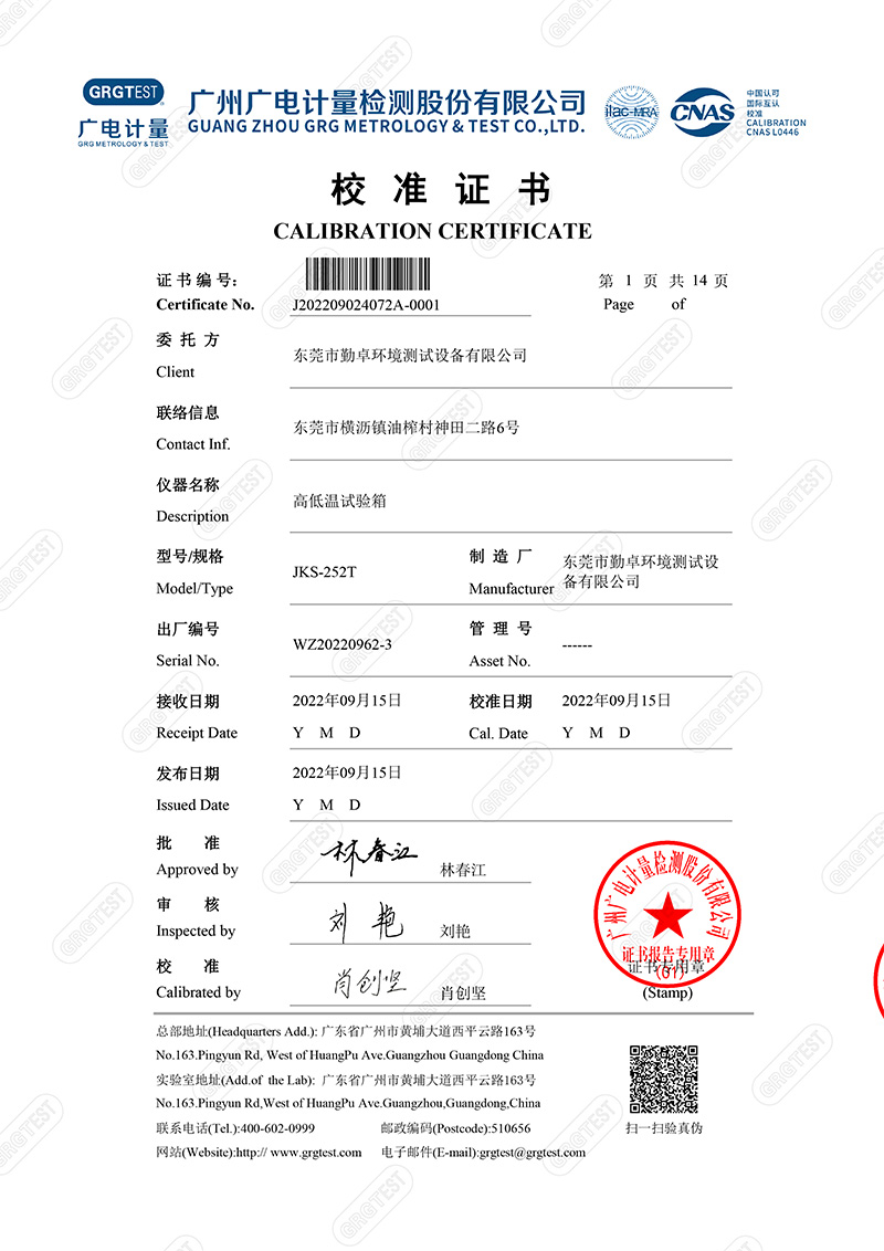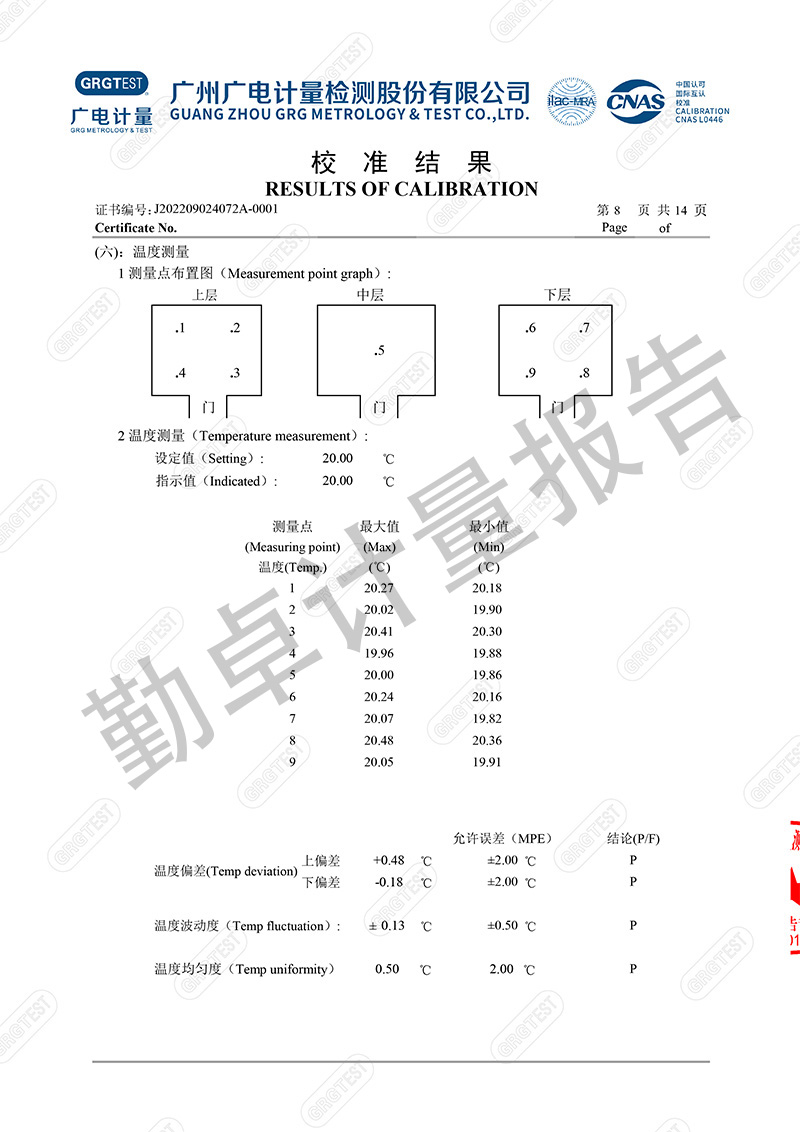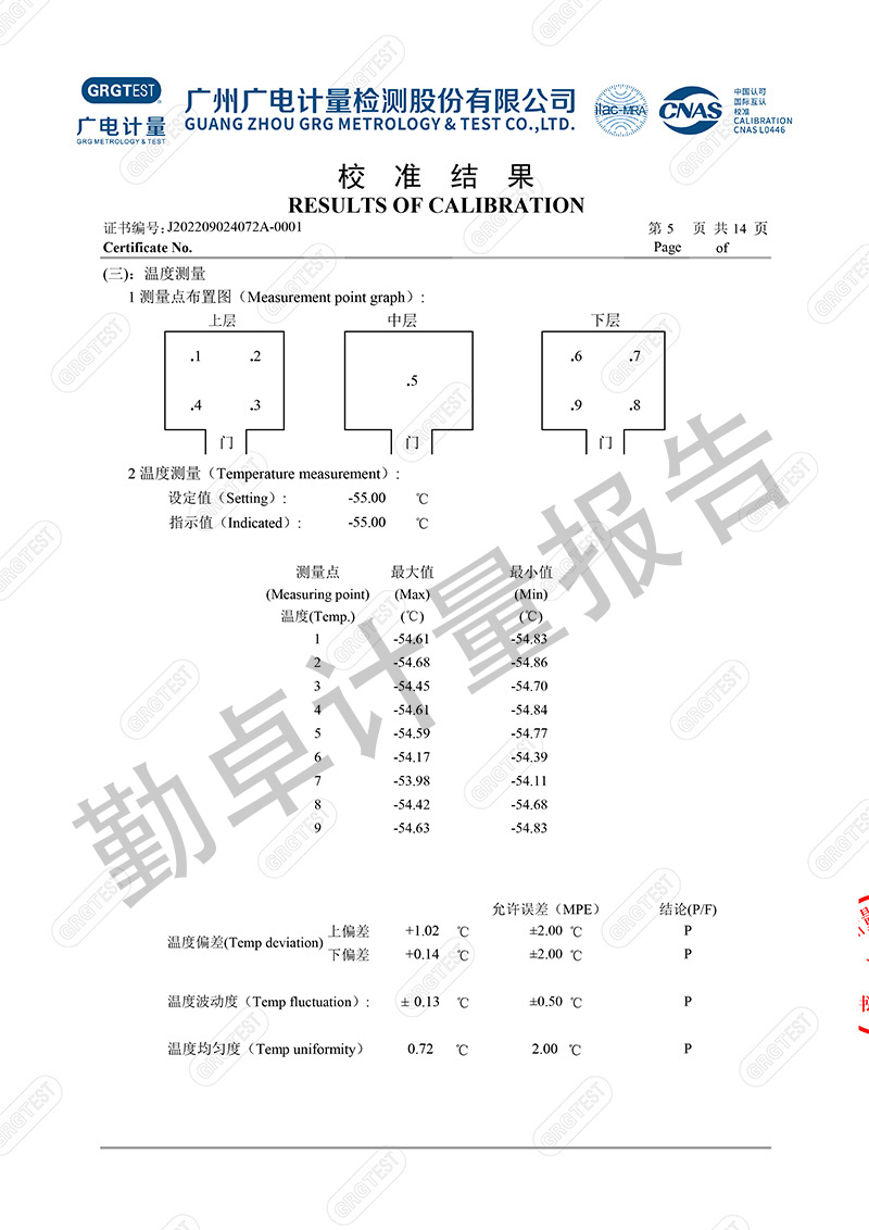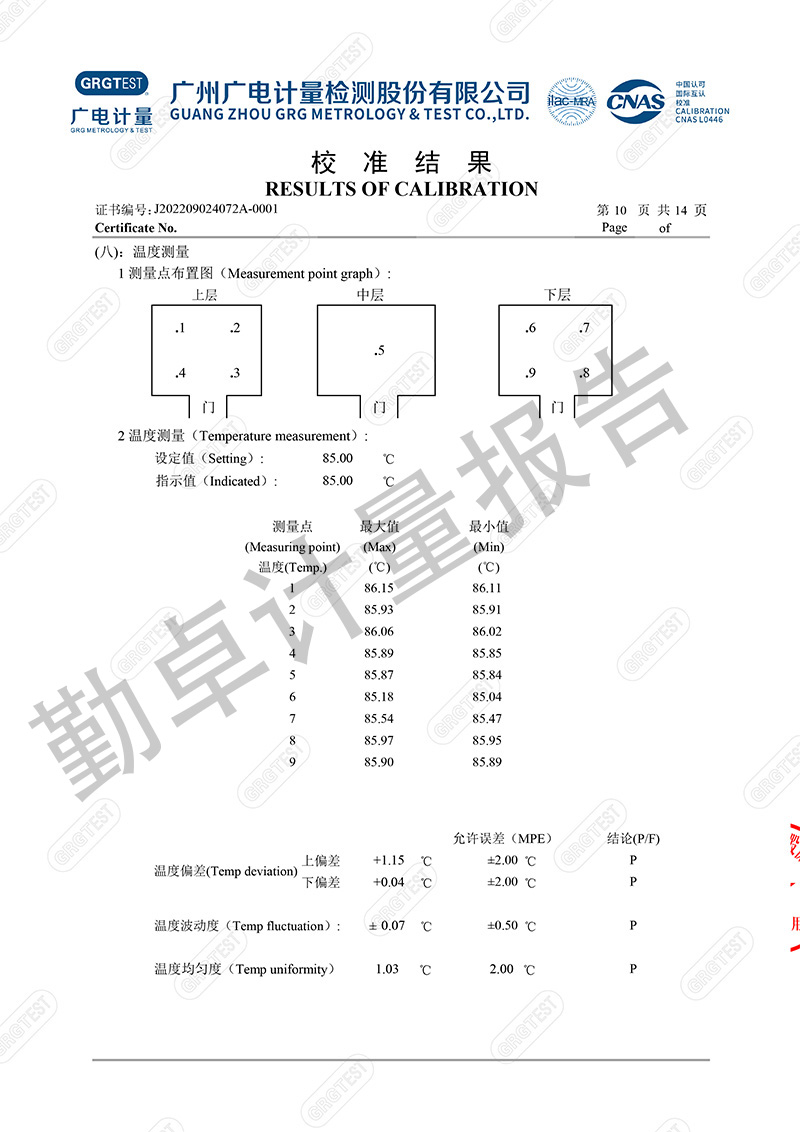 勤卓品牌高低温试验箱一直是勤卓的核心技术优势产品,在高低温试验箱行业中更是以升降温快速,恒温稳定快,温度均匀度偏差小,而成为行业的共识。本次勤卓品牌为用户供应一批250L的高低温试验箱,为进一步评测勤卓品牌高低温试验箱的技术参数,我们邀请了广州广电计量,来进行多项数据的计量。