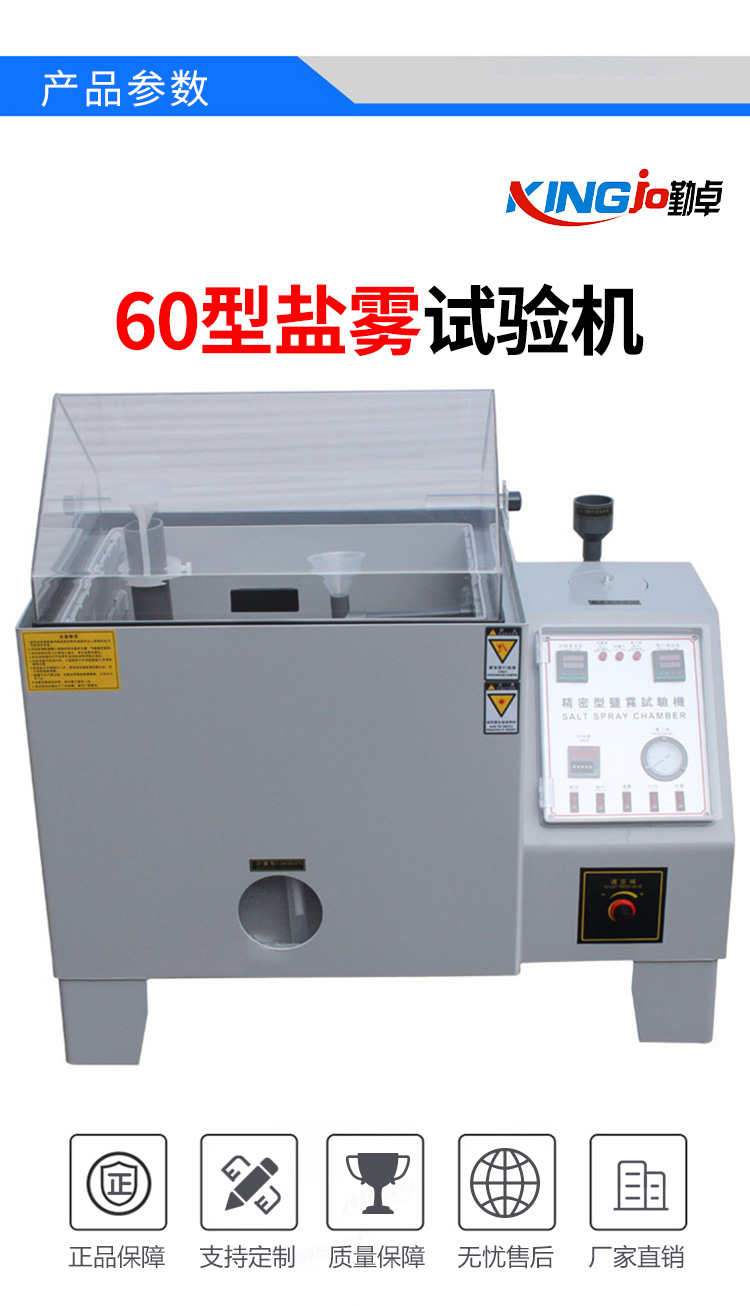 注意:因盐雾试验机在长时间的运行过程中,会对室内的其他金属物质的产品,造成一定的腐蚀影像,建议盐雾试验机和高低温试验箱不要安装在同一个实验室。如一定在同一个实验室,切记务必保持较远距离,以减轻可能带来的腐蚀影像。