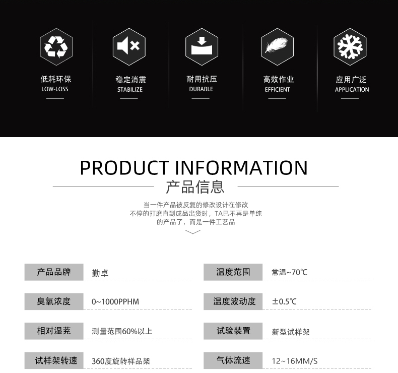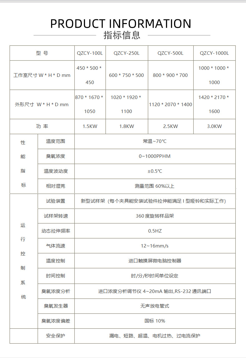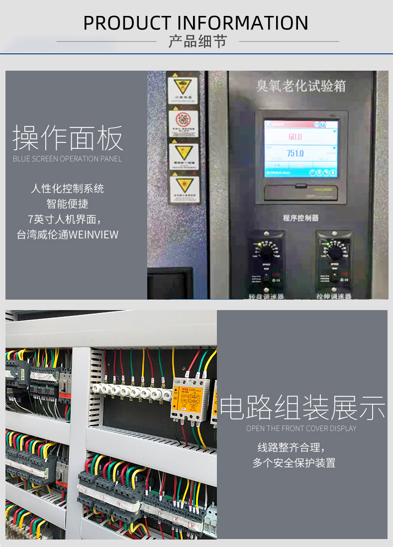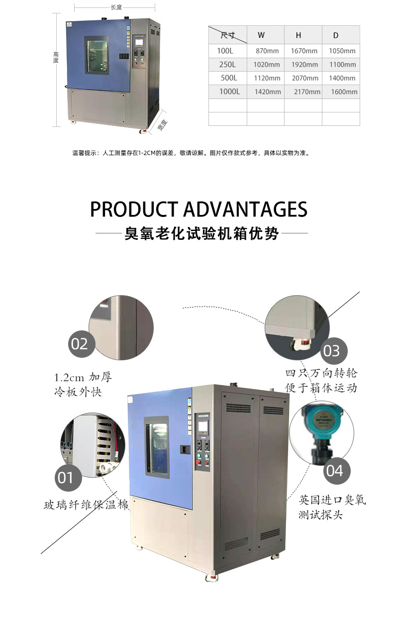 本系列试验箱由臭氧发生器产生高浓度的臭氧、可用于非金属材料,有机材料(涂料、橡胶、塑料、油漆、颜料等)在臭氧条件下的老化试验。