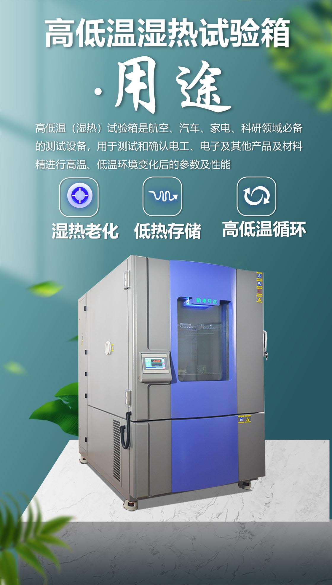恒温恒湿试验箱也称恒温恒湿试验机、恒温恒湿实验箱、可程式湿热交变试验箱、恒温机或恒温恒湿箱,用于检测材料在各种环境下性能的设备及试验各种材料耐热、耐寒、耐干、耐