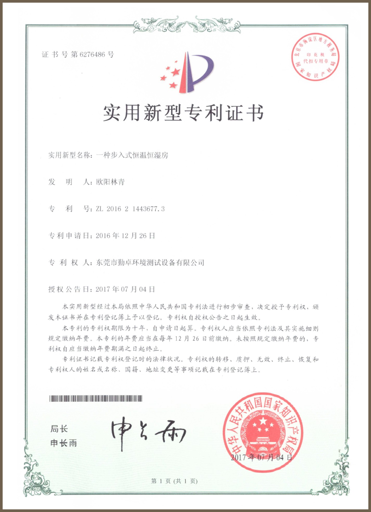 恒温恒湿箱外观专利